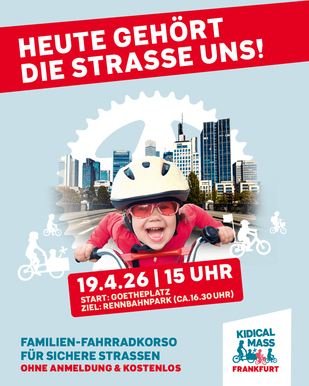 Helfer*innen sollten sich am Tag der Kidical Mass die Zeit zwischen 15 Uhr und 17:30 Uhr reservieren. Bitte melde Dich bei uns: mail@kidicalmass-ffm.de