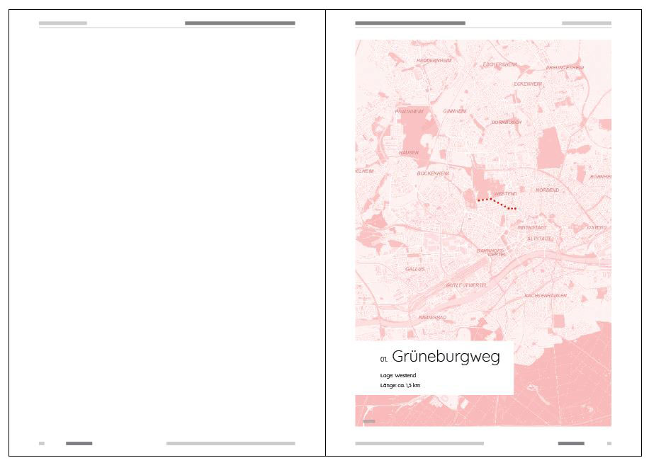 Darin haben wir die einzelnen Straßen in unterschiedlicher Bearbeitungstiefe behandelt. Für einige Straßen wurden sehr detaillierte Pläne erstellt, andere Straßen sind weniger umfangreich bearbeitet oder nur fotografisch und textlich erfasst.