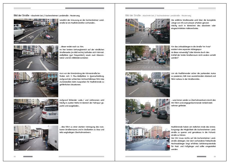 Abgeleitet aus einer umfangreichen Bestandsanalyse der bestehenden Straßenraumgestaltungen haben wir folgende Regeln & Forderungen für die Fahrradfreundlichen Nebenstraßen – “Die Frankfurter Fahrradstraße” definiert: