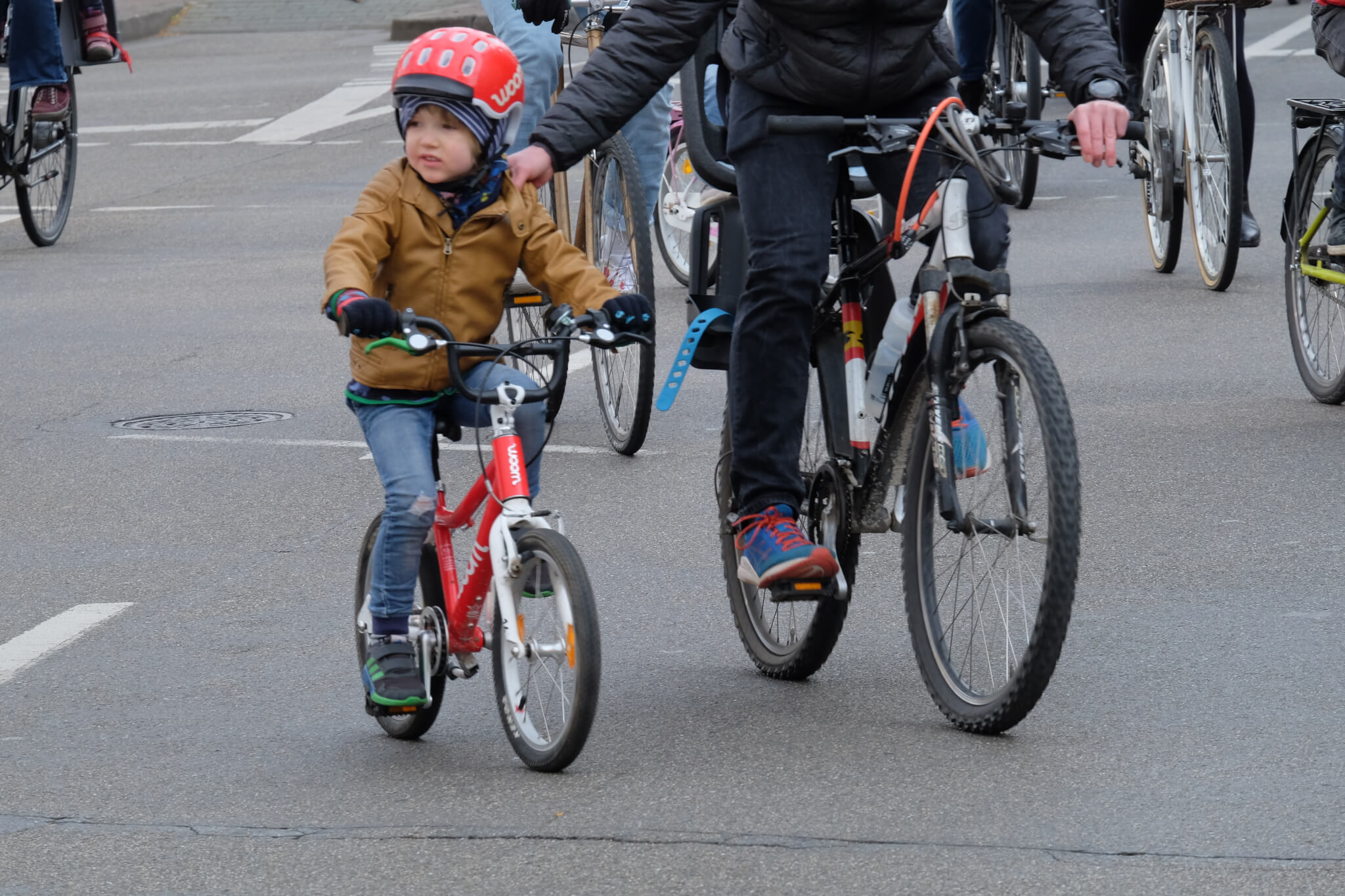 Es gibt keine Altersbeschränkung. Die Kinder sollten in der Lage sein, die ca. 5.5 km mit dem Fahrrad oder Laufrad alleine zu bewältigen, wir fahren ja auch in einem langsamen Tempo. Wenn Sie merken, dass Ihr Kind „schlapp macht“, steigen sie einfach aus dem Korso aus. Einige Familien mit kleinen Kindern entscheiden sich auch dafür, dass die Kinder nicht selbst mitradeln, sondern im Kindersitz oder im Lastenrad gefahren werden.