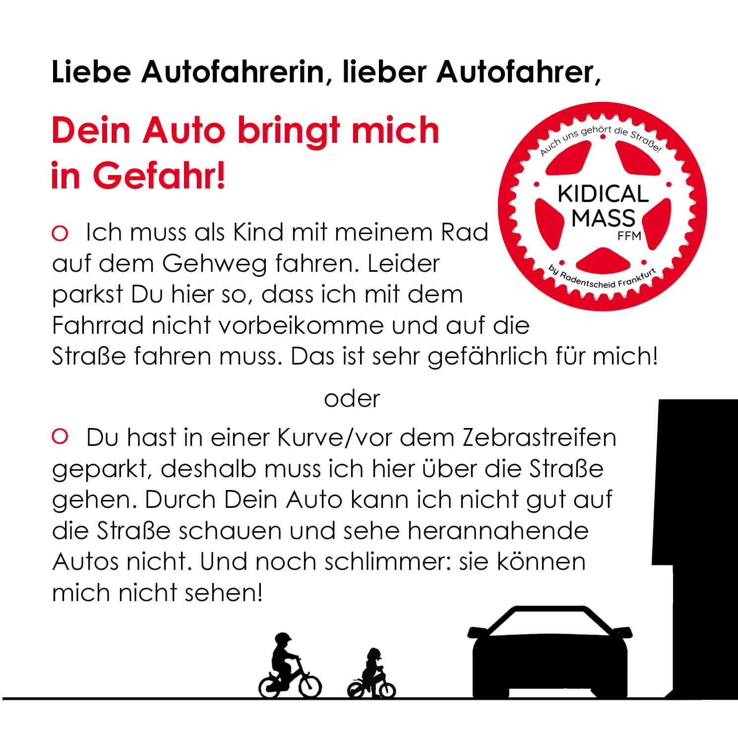 Helfer*innen sollten sich am Tag der Kidical Mass die Zeit zwischen 15 Uhr und 17:30 Uhr reservieren. Bitte melde Dich bei uns: mail@kidicalmass-ffm.de